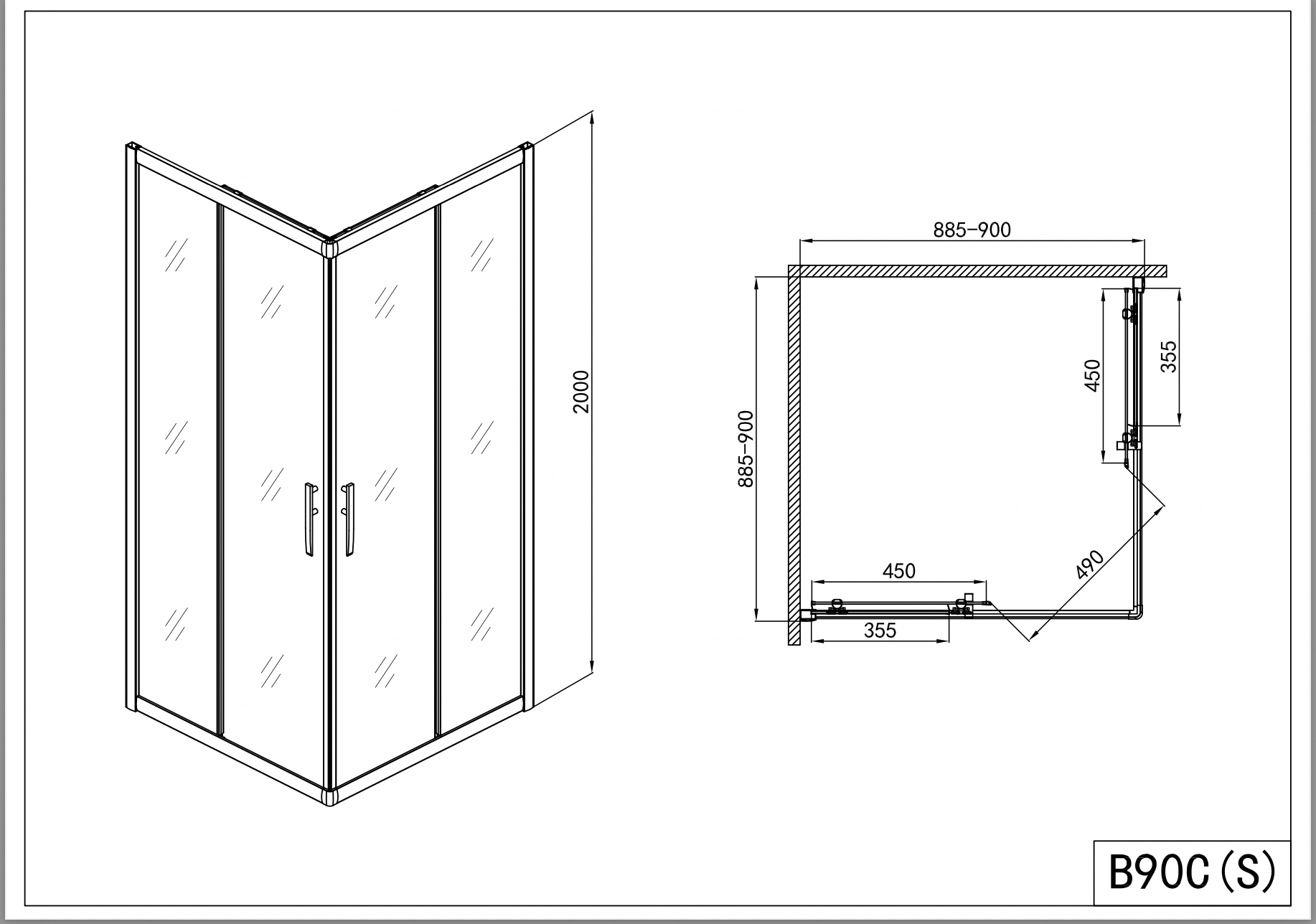 - B90CS: 88,5-90x200 cm