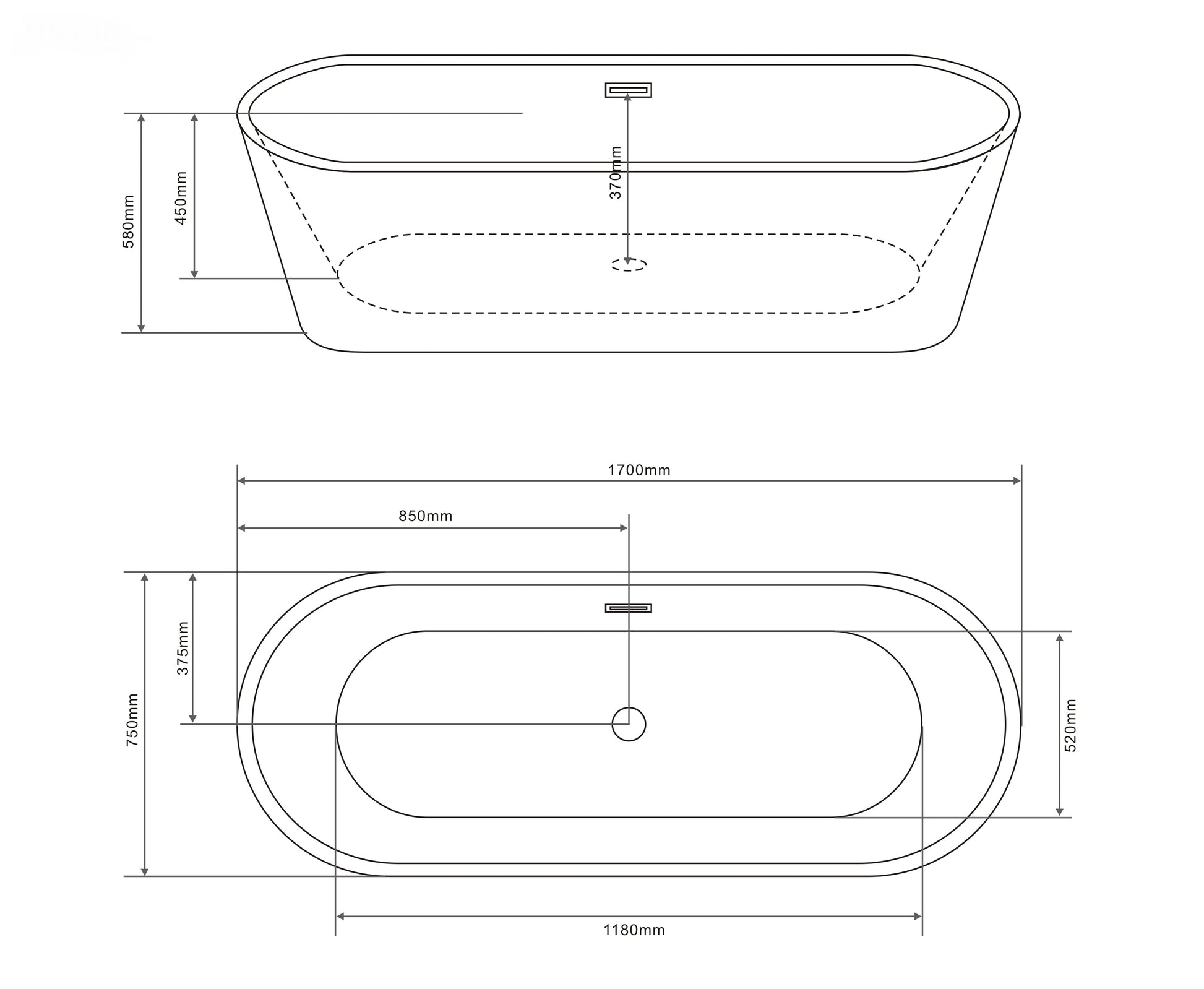 Bañera exenta RENO 170x75x58 cm negra