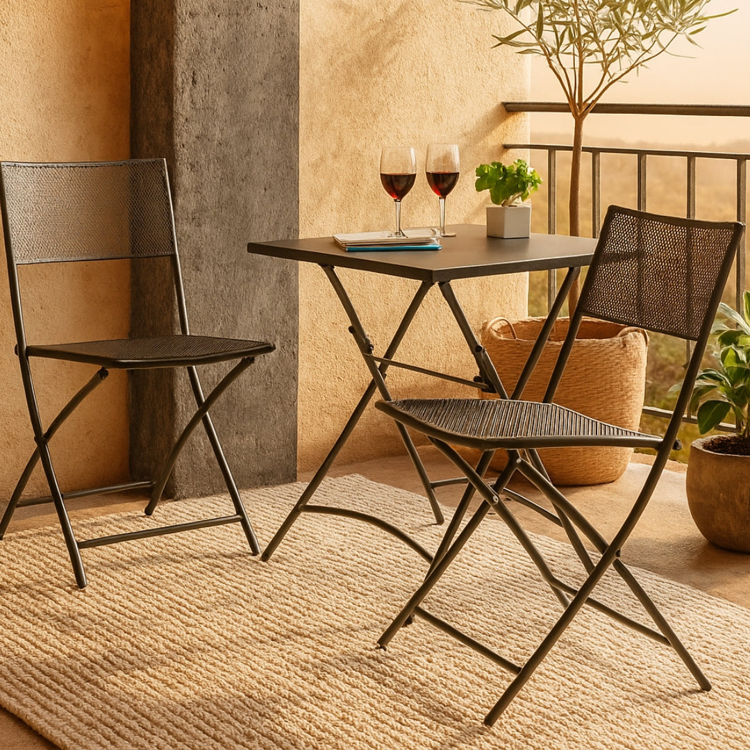 Este conjunto, que ocupa enormemente espacio, se compone de una mesa y dos sillas. Convence por su práctica aplicación y sus posibilidades de almacenamiento. Disfrute de los cálidos días de verano en el balcón o en la terraza. No importa dónde, siempre llamará la atención. Los materiales convencen por su estabilidad, robustez y, además, son resistentes a la intemperie. Cuando no lo estés usando, puedes plegarlo fácilmente y guardarlo. Vea usted mismo.