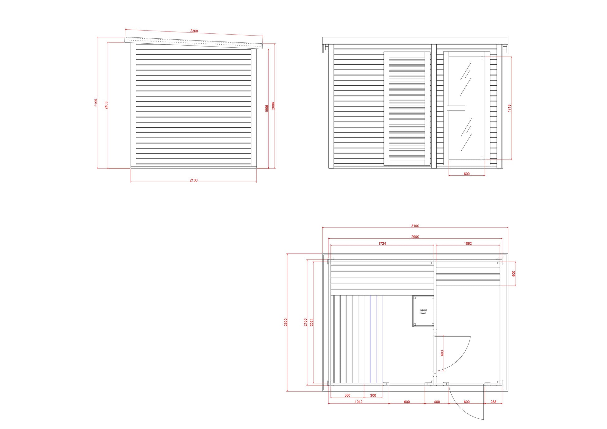 - Sauna: 172,4 x 202,4 x 201,4