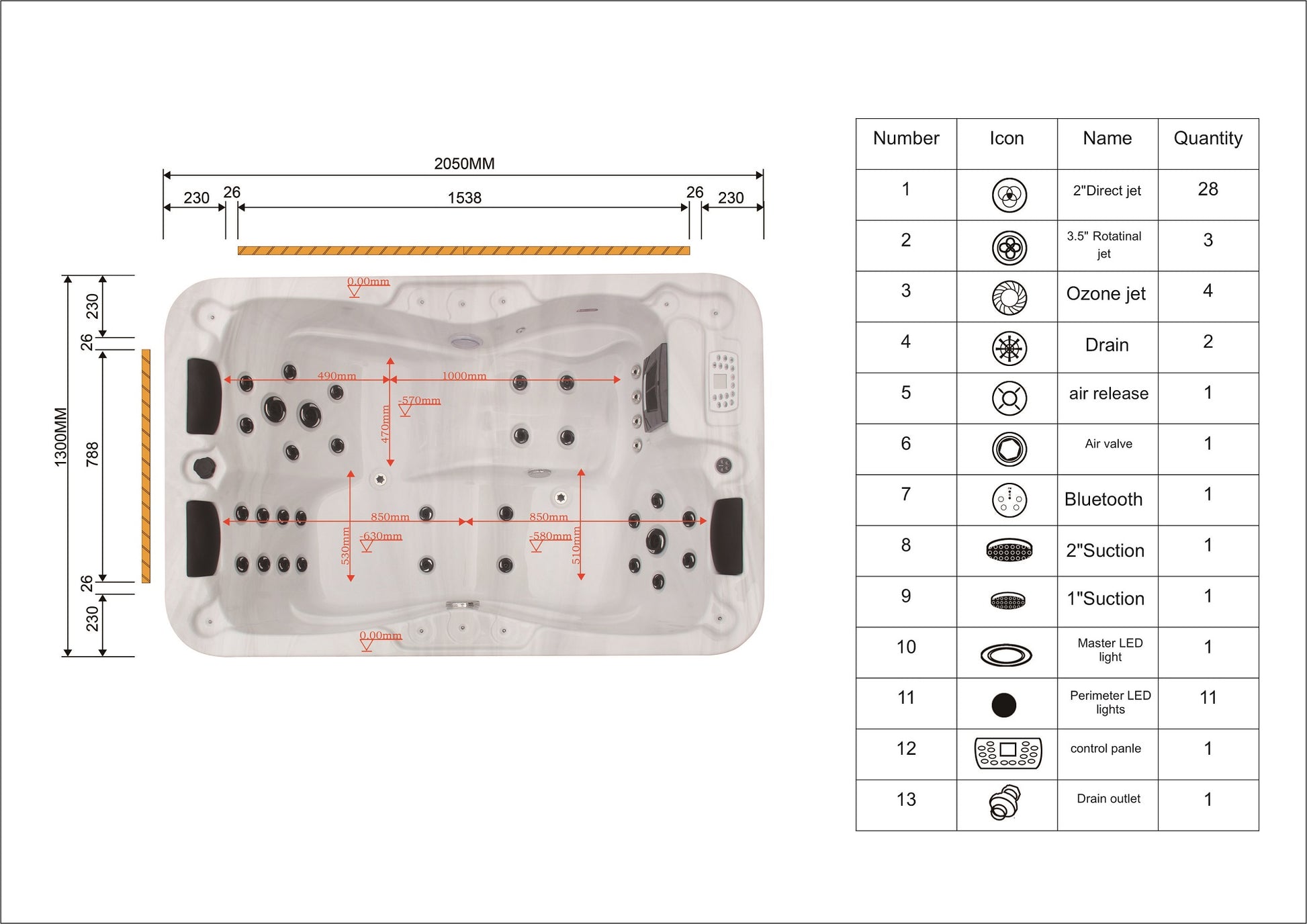 Toda la información y las medidas de preparación necesarias para la entrega y la puesta en funcionamiento de su jacuzzi las encontrará en su lista de verificación personal .