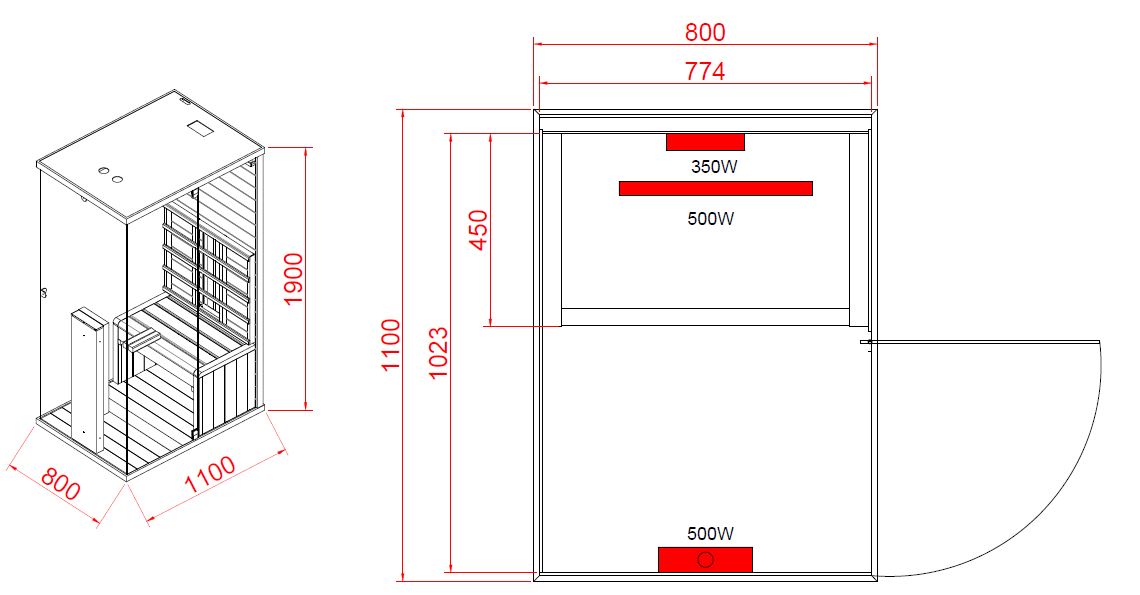 - Dimensiones externas : 80x110x190 cm