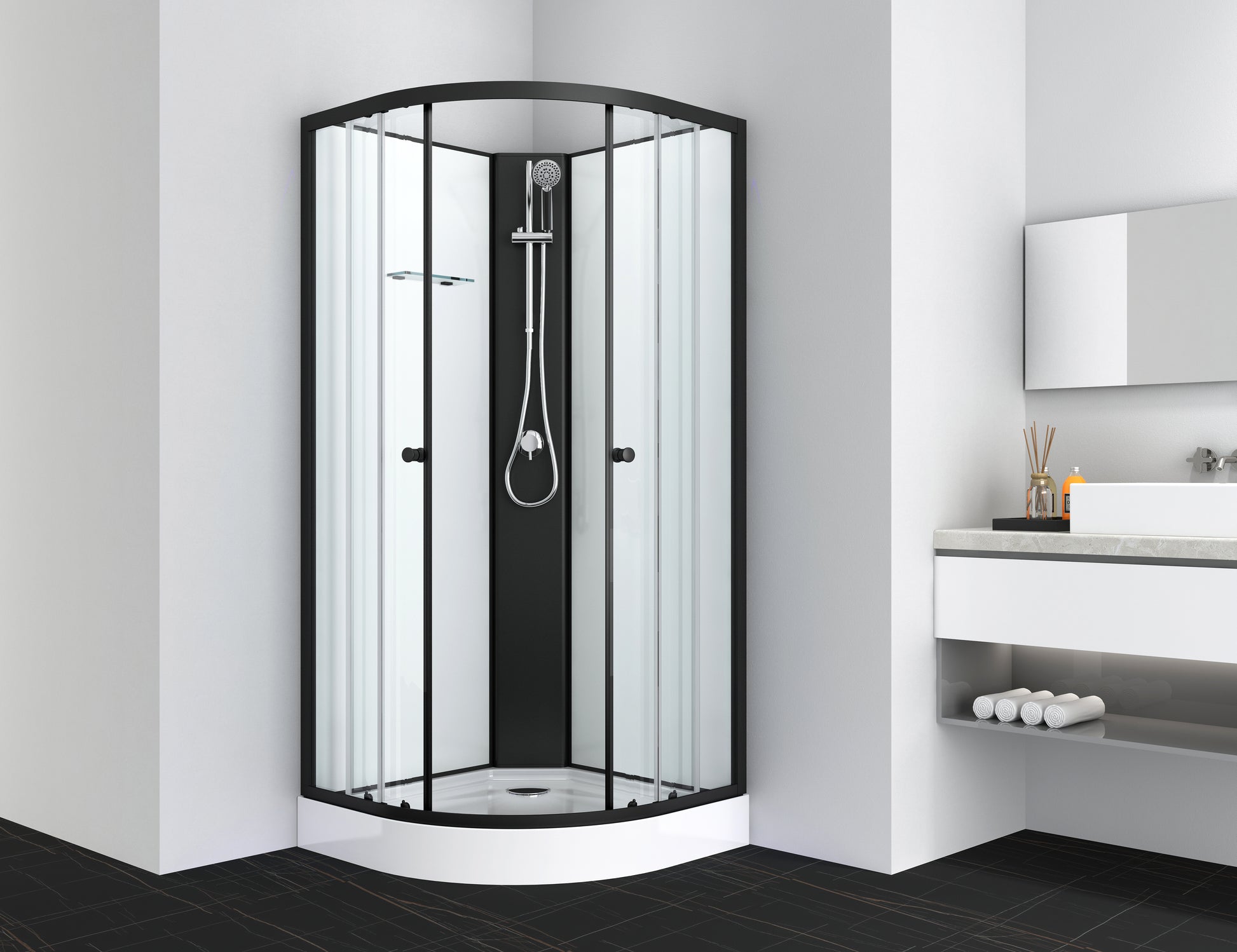 Una mampara de ducha completa es una excelente solución para su baño. Como la cabina de ducha está completamente cerrada, toda el agua permanece dentro de la cabina y se puede instalar en cualquier habitación.