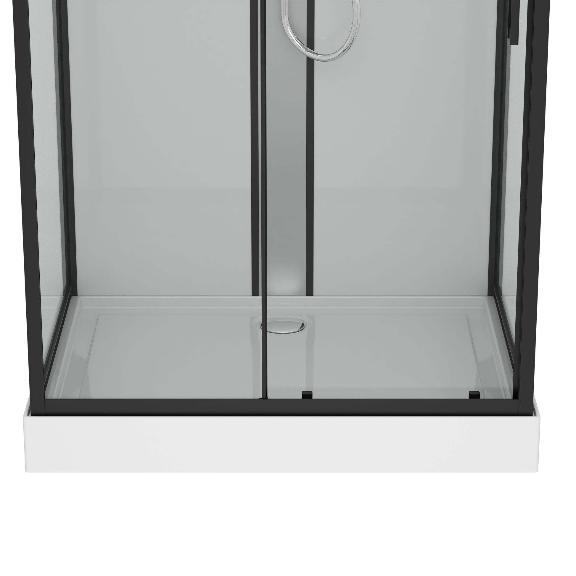 El Boston Black se distingue por el uso de materiales de alta calidad que garantizan seguridad y estilo. Cuenta con vidrio de seguridad de 5 mm de espesor en la puerta y los paneles laterales fijos, así como un panel trasero de vidrio de seguridad negro de 4 mm de espesor. Los perfiles de aluminio negro mate le dan a la cabina un toque moderno y combinan a la perfección con las manijas dobles de ABS, que son resistentes y elegantes.
