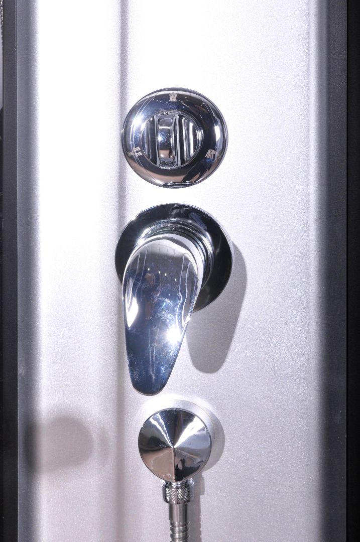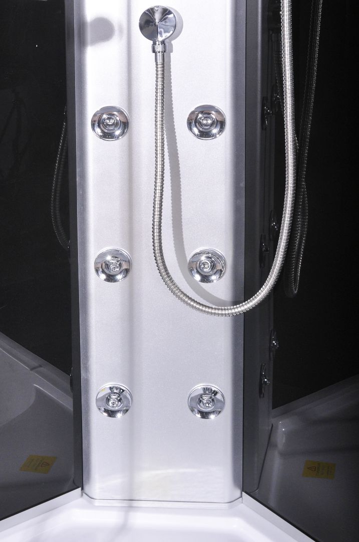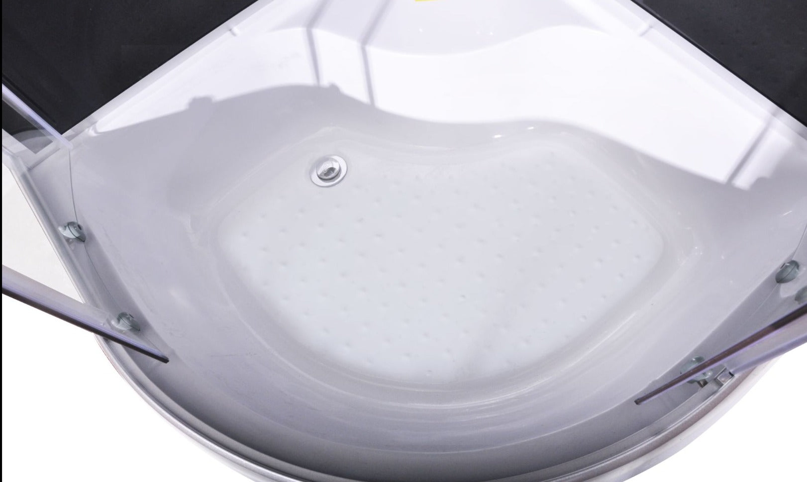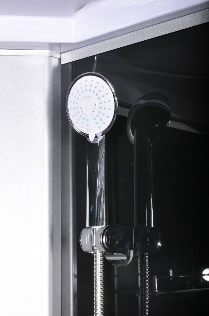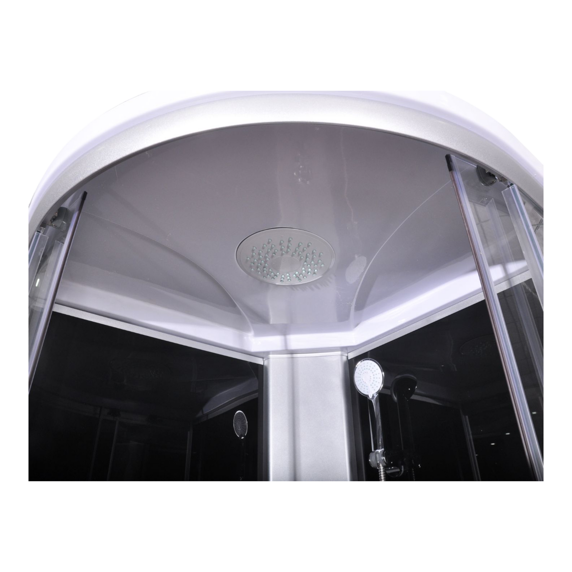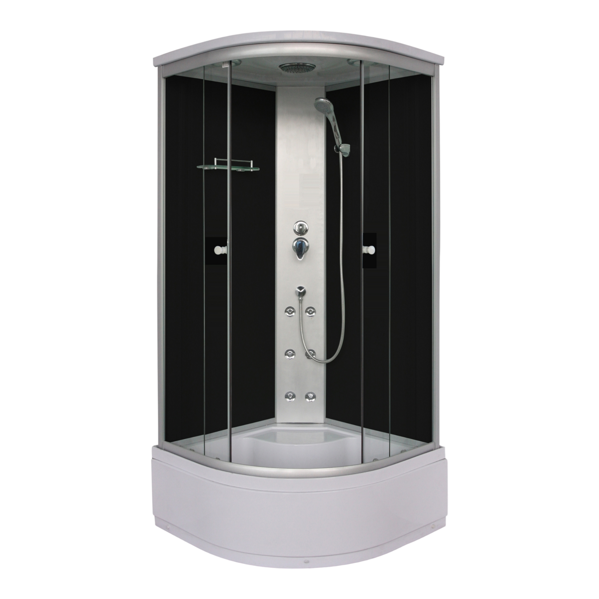 Gracias a su diseño sencillo, la mampara de ducha completa de Sanotechnik se adapta perfectamente a cualquier baño. La pared trasera de cristal negro confiere a esta cabina de ducha un aspecto especialmente elegante. Otros aspectos destacados incluyen los chorros de masaje y la ducha de mano multifuncional.