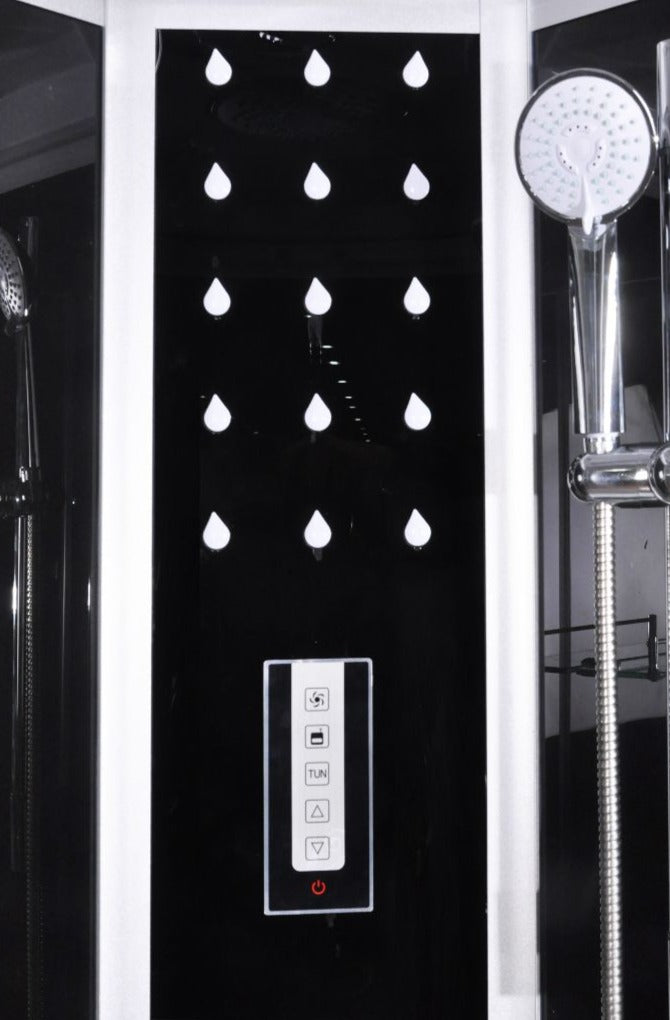 La mampara de ducha completa SCALA BLACK impresiona sobre todo por su elegante aspecto, que se debe al panel trasero negro y a los perfiles de aluminio con aspecto cromado. La alta calidad de los materiales garantiza una larga vida útil. Una característica especial de esta ducha es la radio incorporada. La cabina cuenta con ducha de mano y de cabezal y 6 chorros de masaje. Para mayor comodidad, la cabina cuenta con un estante de vidrio y un asiento plegable. También encontrará iluminación en la ducha.