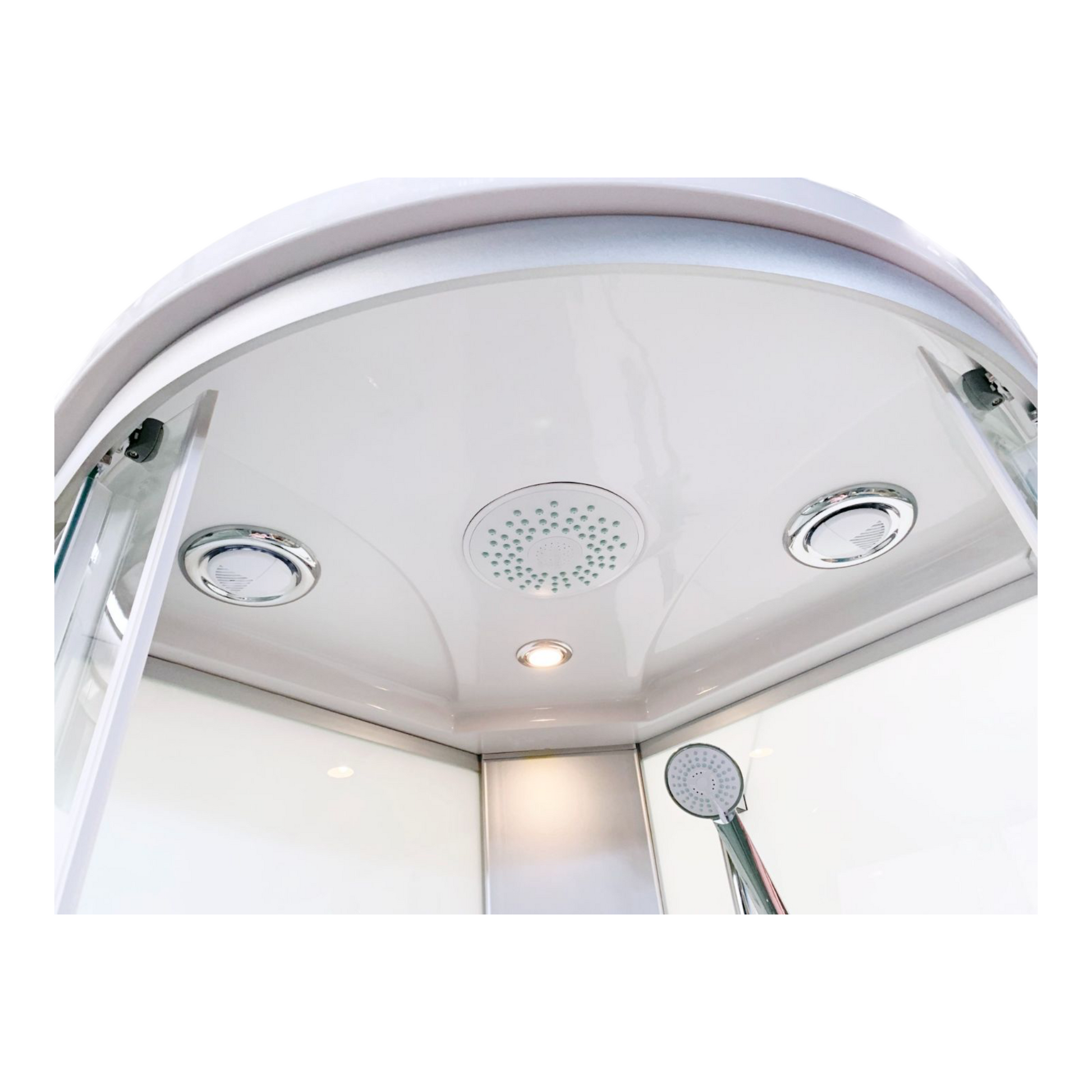 La mampara de ducha completa SCALA impresiona sobre todo por su aspecto elegante. La alta calidad de los materiales garantiza una larga vida útil. Una característica especial de esta ducha es la radio incorporada. La cabina cuenta con ducha de mano y de cabezal y 6 chorros de masaje. Para mayor comodidad, la cabina cuenta con un estante de vidrio y un asiento plegable. También encontrará iluminación en la ducha.