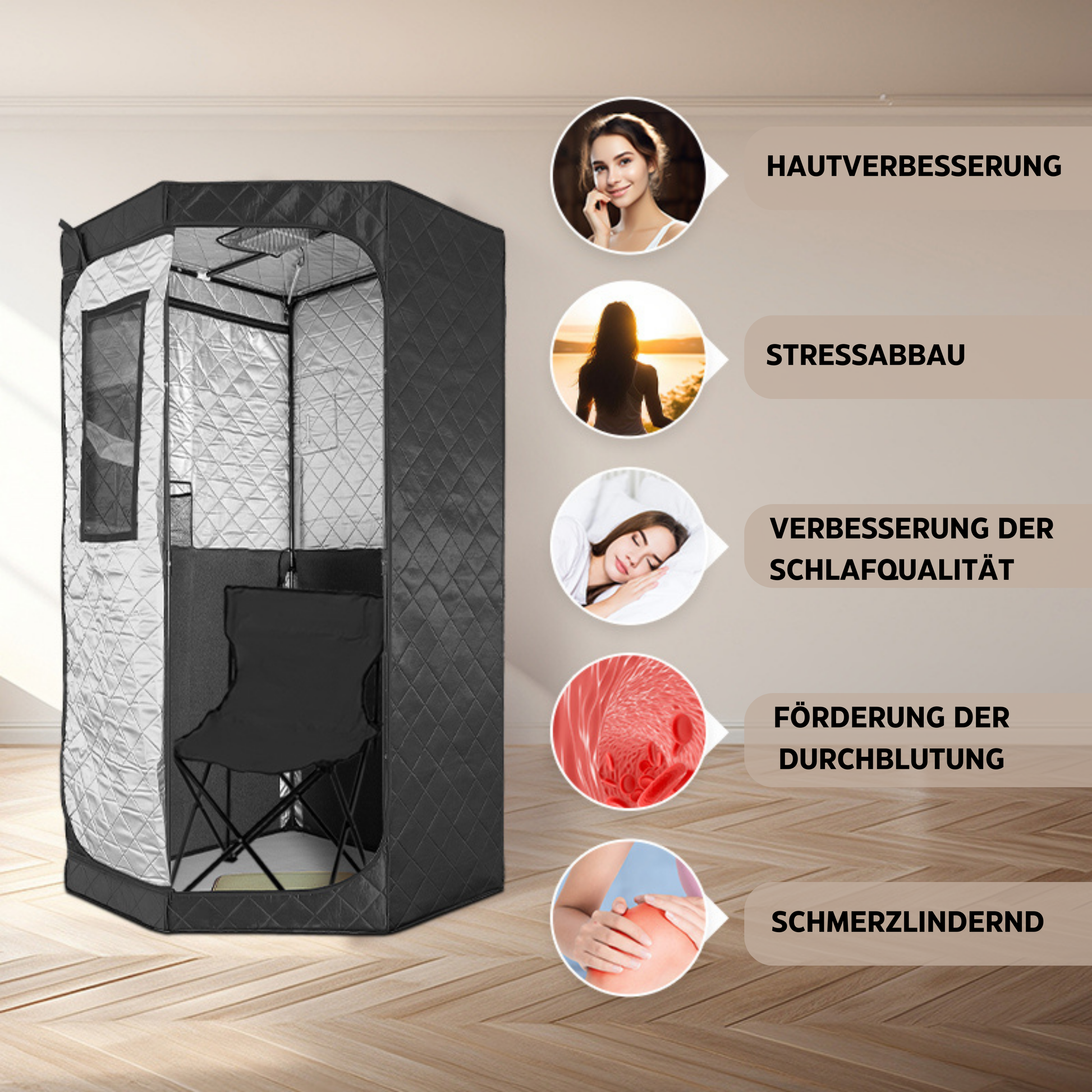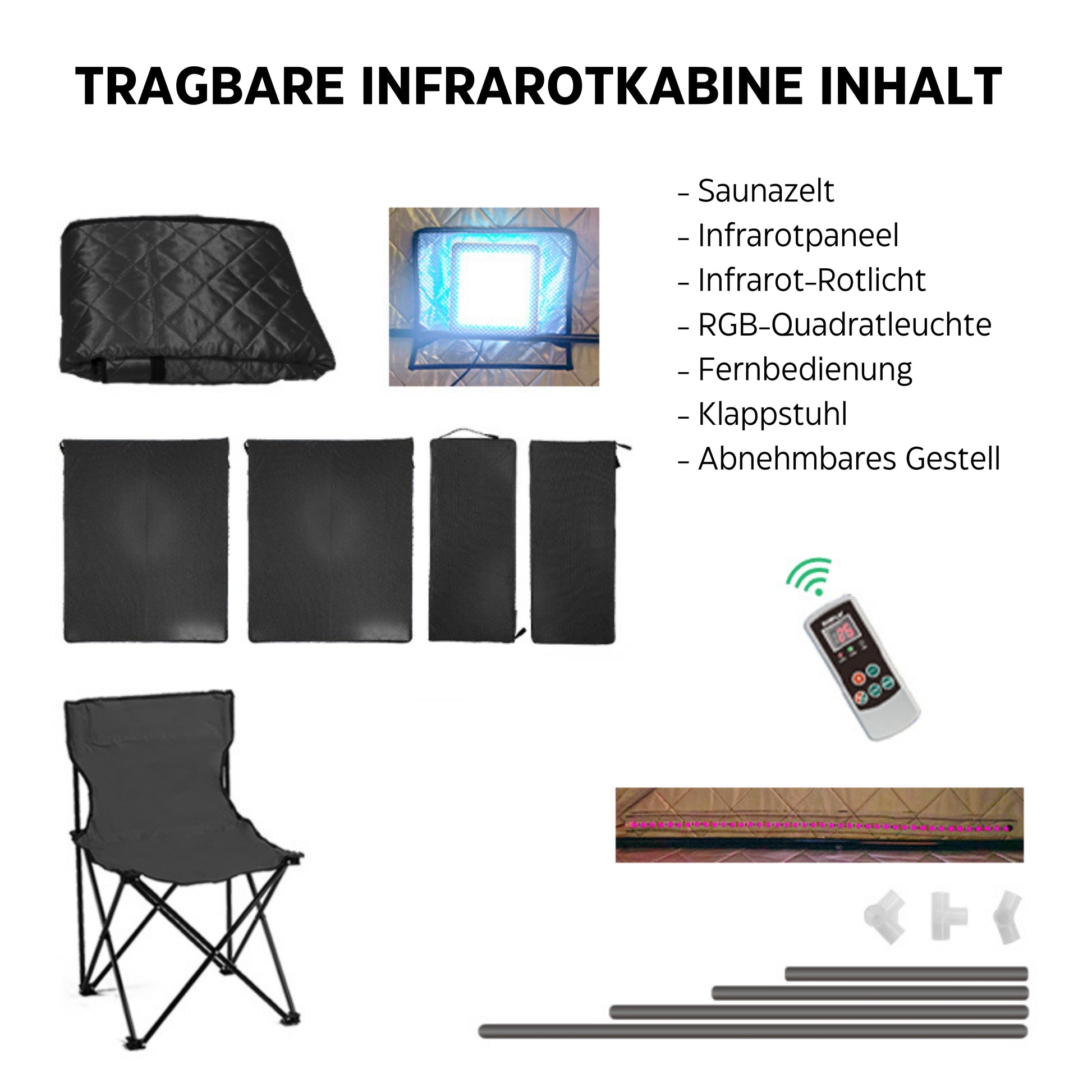 Experimente una relajación profunda con la cabina de infrarrojos portátil. Compacto, potente y fácil de usar: para una experiencia de bienestar que se integra perfectamente en su vida diaria. ¡Ideal para casa o para llevar de viaje!