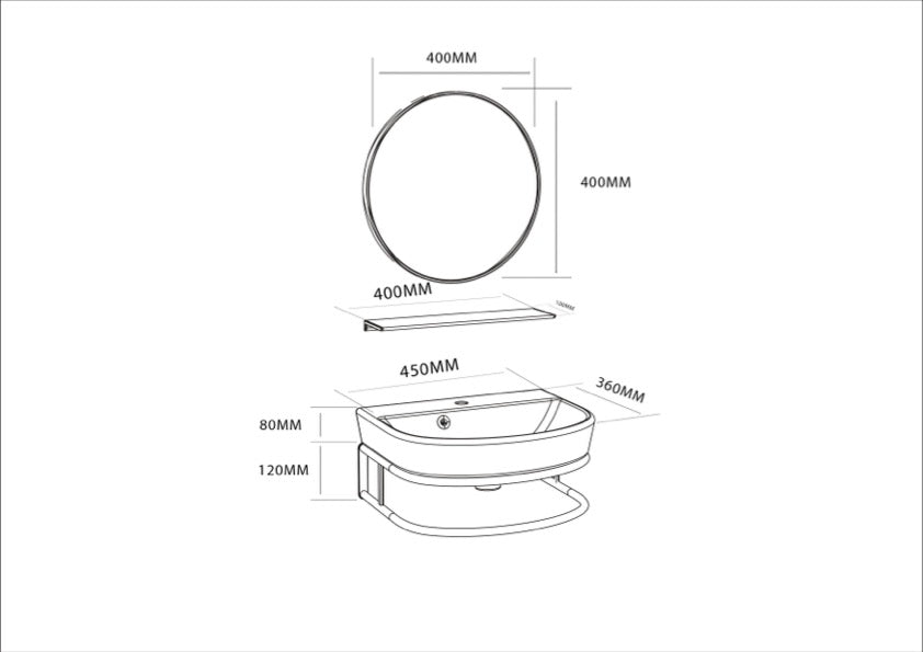 DELTA 45 Waschbecken-Konsolenset mit Spiegel und Ablage